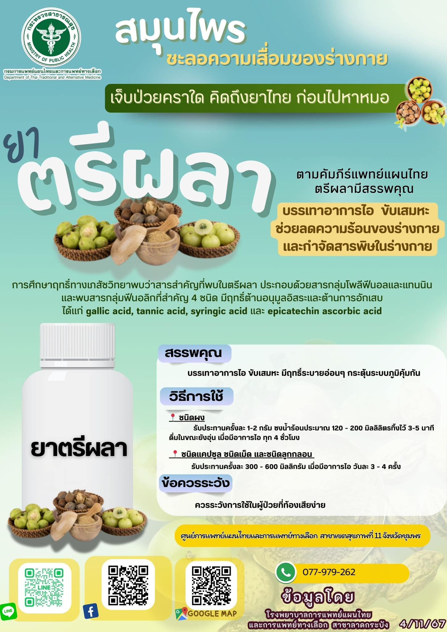 วันพฤหัสบดี ที่ 28 สิงหาคม 2568 ศูนย์การแพทย์แผนไทยและการแพทย์ทางเลือก เขตสุขภาพที่ 11 จังหวัดชุมพร โดย สิบเอกหญิงพท.ป.ภาวิณี อ่อนมุข หัวหน้าศูนย์ มอบหมายให้ บุคลากรแพทย์แผนไทย และเจ้าหน้าที่ ของทางศูนย์ ออกหน่วยแพทย์แผนไทยเคลื่อนที่ให้บริการ ณ สถานีตำรวจภูธรทุ่งตะโก อ.ทุ่งตะโก จ.ชุมพร ให้บริการตรวจ วินิจฉัย จ่ายยาสมุนไพรและให้คำปรึกษาผู้ป่วยตามองค์ความรู้การแพทย์แผนไทย ทั้งนี้มีจำนวนผู้มารับบริการตรวจ วินิจฉัยโรค รับยาสมุนไพร ประมาณ 10 ราย ส่วนใหญ่ อาการไอ เจ็บคอ อาการปวดตึงคอ บ่าไหล่ อาการวิงเวียนศรีษะ จ่ายยาอมแก้ไอสมุนไพร ยาน้ำตรีผลา แก้ลมแก้เส้น ไพลครีม น้ำมันกัญชาเดชา ยาหอมเทพจิตร ยาหอมนวโกฐ เป็นต้นและขอคำปรึกษาเกี่ยวกับการดูแลสุขภาพตนเองด้วยการแพทย์แผนไทย