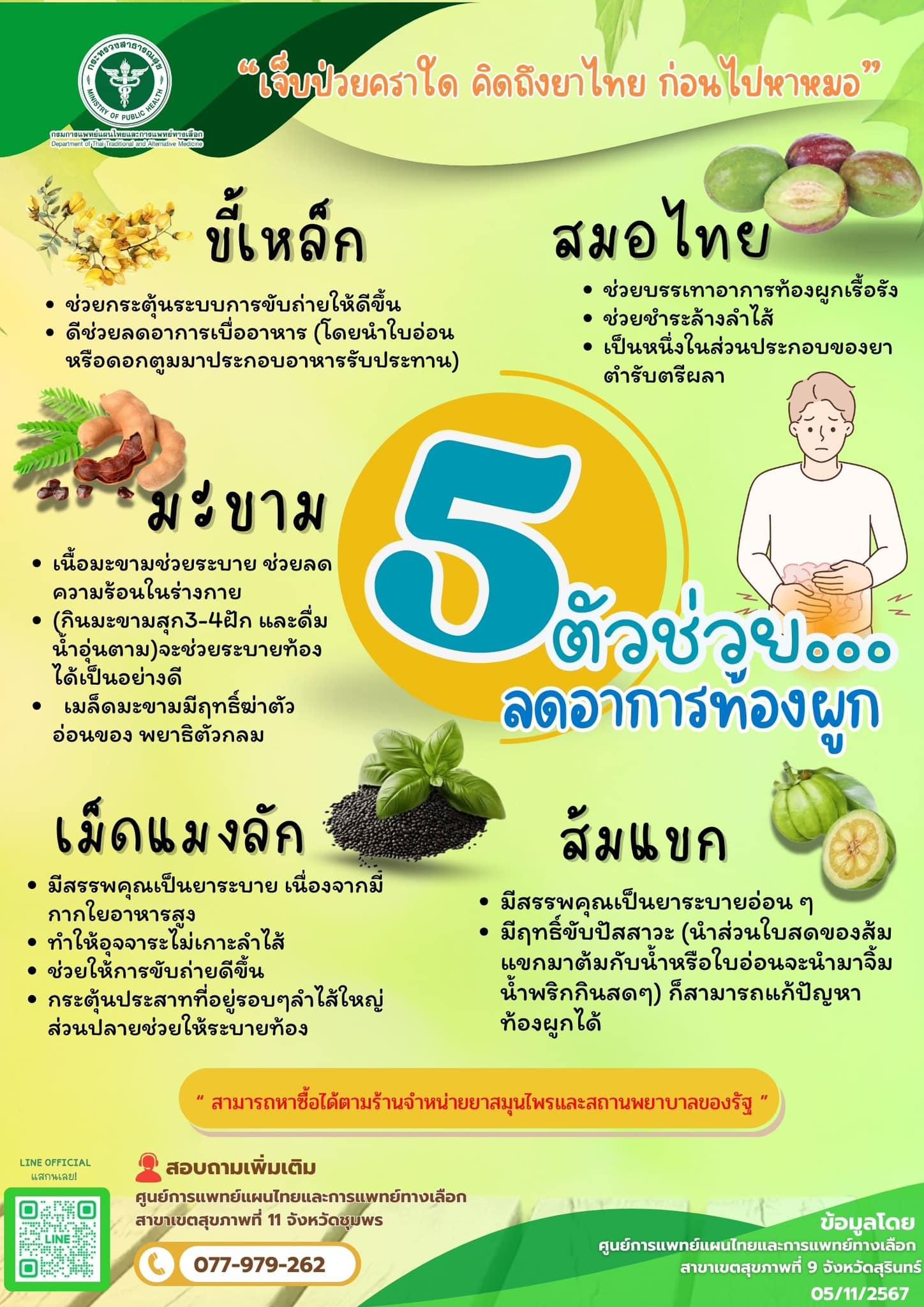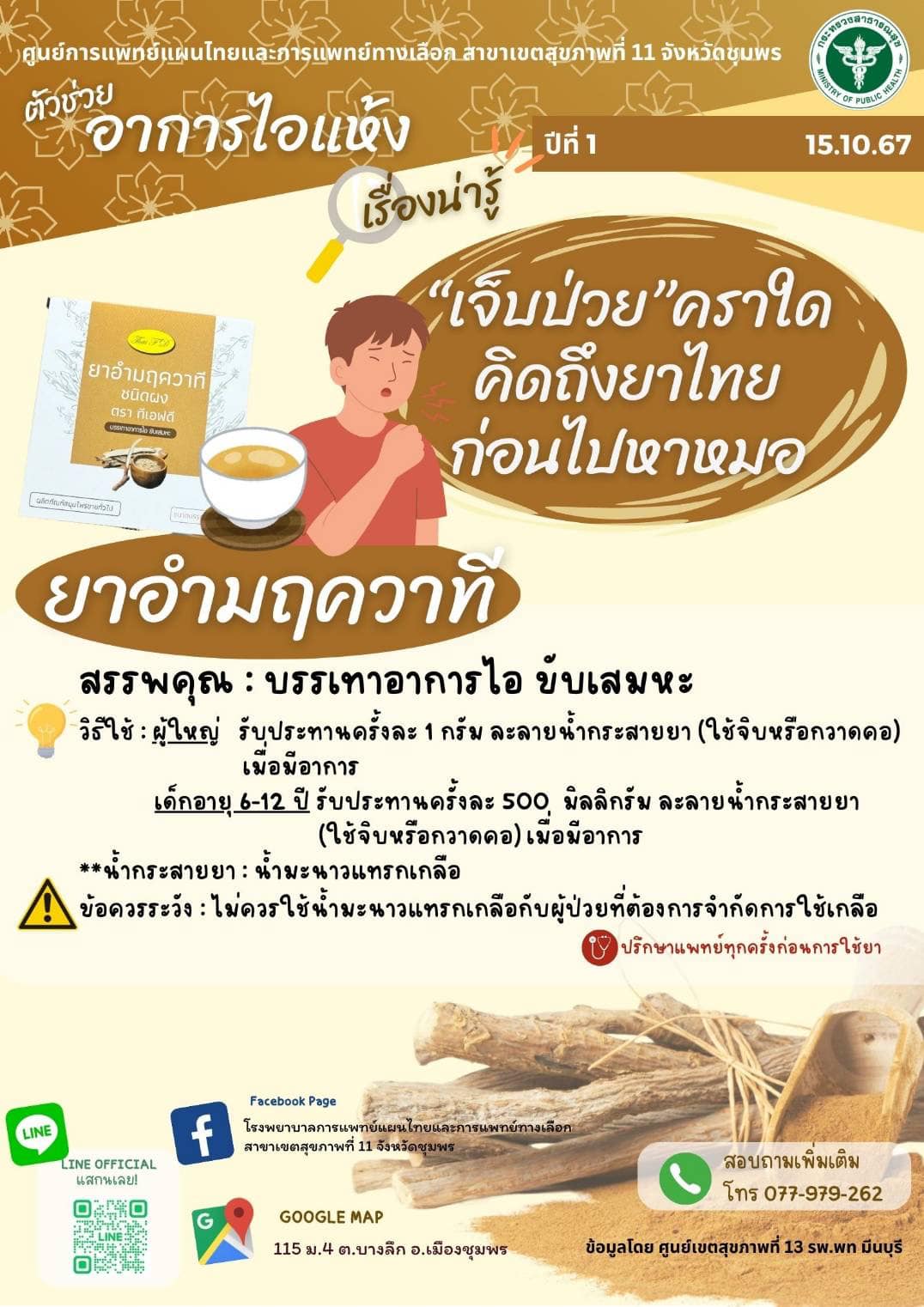 วันพฤหัสบดี ที่ 14 สิงหาคม 2568 ศูนย์การแพทย์แผนไทยและการแพทย์ทางเลือก เขตสุขภาพที่ 11 จังหวัดชุมพร โดย สิบเอกหญิง พท.ป.ภาวิณี อ่อนมุข หัวหน้าศูนย์ มอบหมายให้ บุคลากรแพทย์แผนไทย และเจ้าหน้าที่ ของทางศูนย์ ออกหน่วยแพทย์แผนไทยเคลื่อนที่ให้บริการ ณ สถานีตำรวจภูธรสวี ตำบลนาโพธิ์ อำเภอสวี จังหวัดชุมพร ให้บริการตรวจ วินิจฉัย จ่ายยาสมุนไพรและให้คำปรึกษาผู้ป่วยตามองค์ความรู้การแพทย์แผนไทย ทั้งนี้มีจำนวนผู้มารับบริการตรวจ วินิจฉัยโรค รับยาสมุนไพร ประมาณ 21 ราย ส่วนใหญ่ อาการปวดเมื่อยกล้ามเนื้อ อาการผื่นคันตามผิวหนัง อาการไอ เจ็บคอ จ่ายยาน้ำมันไพล แก้ลมแก้เส้น สารสกัดเถาวัลย์เปรียง ขี้ผึ้งสมุนไพรแก้คัน ครีมบัวบก ยาอมแก้ไอสมุนไพร ยาน้ำมะขามป้อม เป็นต้น
