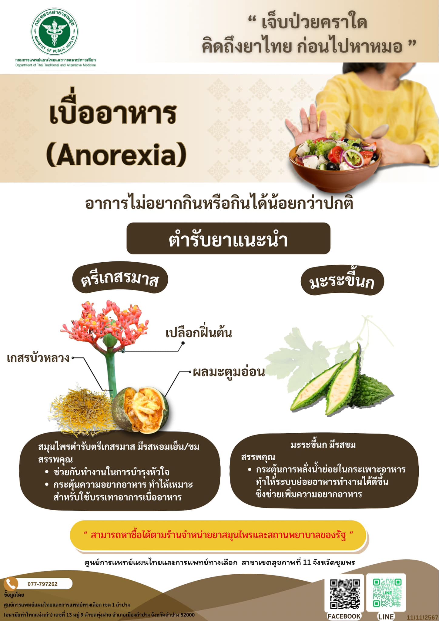 วันจันทร์ ที่ 25 สิงหาคม 2568 ศูนย์การแพทย์แผนไทยและการแพทย์ทางเลือก เขตสุขภาพที่ 11 จังหวัดชุมพร โดย สิบเอกหญิงพท.ป.ภาวิณี อ่อนมุข หัวหน้าศูนย์ มอบหมายให้ บุคลากรแพทย์แผนไทย และเจ้าหน้าที่ ของทางศูนย์ ออกหน่วยแพทย์แผนไทยเคลื่อนที่ให้บริการ ณ โรงเรียนท่าแซะรัชดาภิเษก อ.ท่าแซะ จ.ชุมพร ให้บริการตรวจ วินิจฉัย จ่ายยาสมุนไพรและให้คำปรึกษาผู้ป่วยตามองค์ความรู้การแพทย์แผนไทย ทั้งนี้มีจำนวนผู้มารับบริการตรวจ วินิจฉัยโรค รับยาสมุนไพร ประมาณ 32 ราย ส่วนใหญ่ อาการปวดเมื่อยตามร่างกาย อาการท้องอืดท้องเฟ้อ อาการไอ เจ็บคอ จ่ายยาสารสกัดเถาวัลย์เปรียง ยาแก้ลมแก้เส้น ขมิ้นชัน ธาตุอบเชย ยาอมแก้ไอสมุนไพร ยาน้ำตรีผลา เป็นต้น